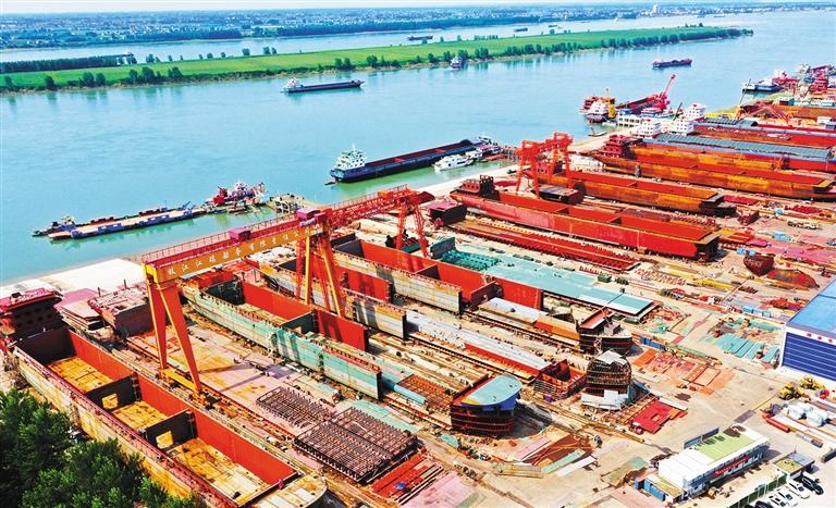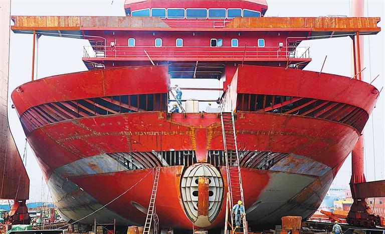 ▲位于湖北省枝江市的宜昌船舶工业园在建造万吨级货轮。刘卫东摄(中经视觉)