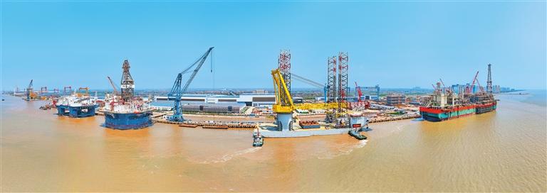 ▼位于江苏省南通市的中远海运海工码头,大型海工项目正在加紧建造。中远海运海工自投产以来,累计设计建造及交付50余座海工装备,几乎覆盖了从浅海到深海、从采油生产到生活辅助和风电安装全类型,成为我国海洋工程装备制造业的领军者。许丛军摄(中经视觉)