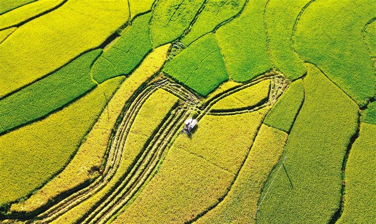 8月12日,湖南省双峰县井字镇铜梁村村民驾驶收割机收割再生稻。再生稻是一种“利用收割后稻茬继续发苗长穗”的种植模式,可一次播种两季收获。近年来,当地在确保双季稻面积稳定的基础上,依托种粮大户和专业合作社,因地制宜发展再生稻10万余亩,助力提高稻田综合生产能力。