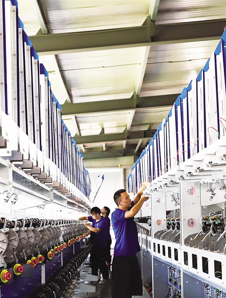 九月九日,工人在浙江省台州市一家纺织企业赶制海外订单。今年以来,当地多措并举助企纾困,力保产业链供应链稳定,外贸企业发展势头强劲。蒋友青摄(中经视觉)