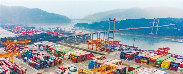 2月12日拍摄的重庆果园港。果园港是我国内河最大的铁公水多式联运枢纽港,陆海新通道、中欧班列(重庆)和长江黄金水道在此汇聚。今年以来,重庆多举措助力外贸复苏增效,通过各出海出境通道,使重庆成为开放前沿,助力企业“走出去”。