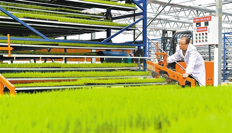3月20日,四川省广安市邻水县工厂化育秧中心技术人员在调整多层育秧架喷灌设施。近年来,广安市加快工厂化育秧中心建设,大力推广水稻机械化育秧,促进粮食增产增收。