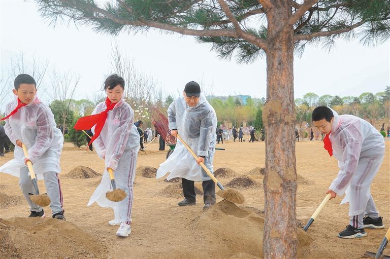 植树点位于北小河和坝河交汇处的东坝中心公园内,面积约300亩。该地块原为东坝乡东风村所在地,经搬迁腾退和环境整治,正在规划构建以生物多样性为特色的生态空间。东坝中心公园内,参加义务植树的首都干部群众、少先队员正干得热火朝天。