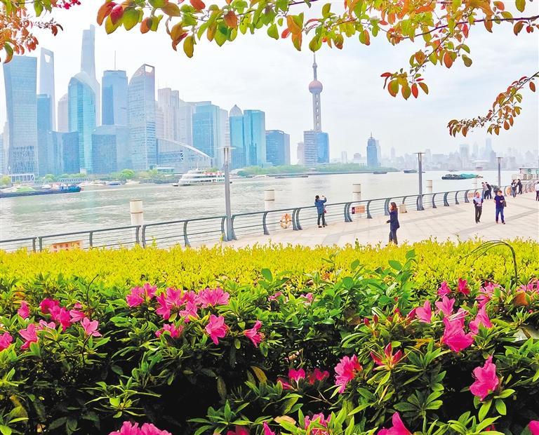◀4月14日,游客在上海市虹口滨江段欣赏春日美景。近年来,上海市积极拓展绿地服务功能和绿色共享空间,新建改建了一批公园绿地。