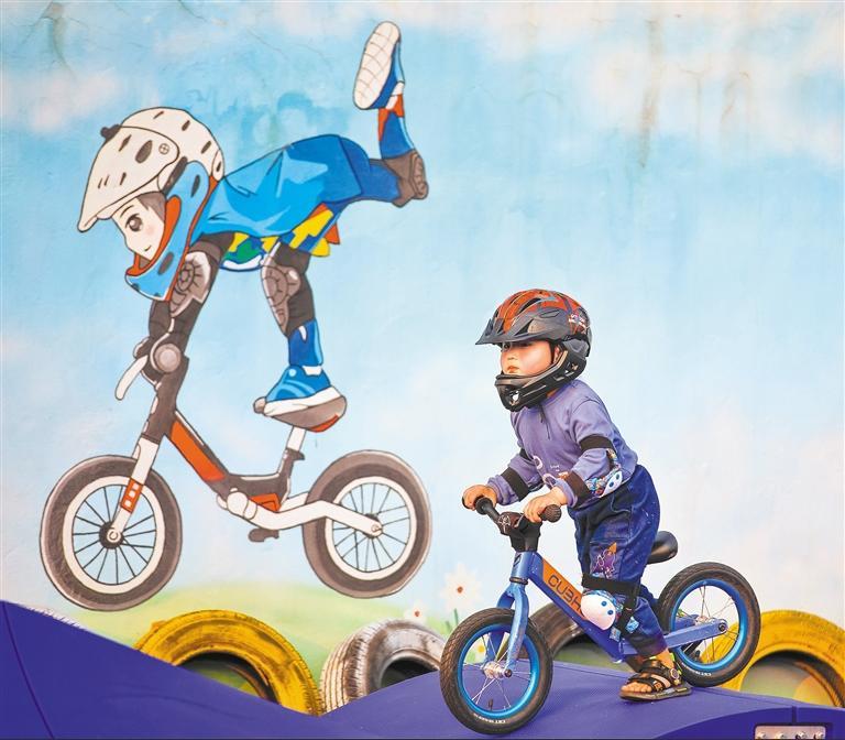 ▲4月11日,福建省福州鼓楼区西河智慧体育公园,小朋友在练习平衡车。当地建设了一批空间开放、方便实用的体育文化公园,为市民提供了休闲游憩、娱乐健身的绿色共享空间。谢贵明摄(中经视觉)
