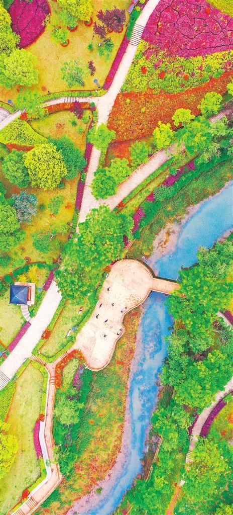 ▶4月13日,湖南省新田县党建主题公园春色宜人。该县将城市建绿、增绿列入民生工程,因地制宜建设生态公园绿地,打造15分钟生态休闲圈。