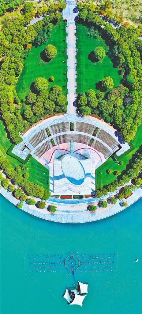 ◀4月10日,俯瞰江苏省张家港市暨阳湖公园景色。近日,江苏省发布首批开放共享公园绿地585处,开放共享总面积超945公顷。