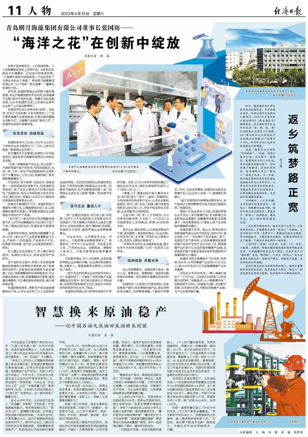 多年来,张国防带领企业躬耕不辍向海图强,专注于海藻资源的开发利用,延伸海藻产业链,提升产品附加值。凭着扎实的创新实践,2022年张国防当选“山东省行业领军企业家”“山东省创新榜样”。