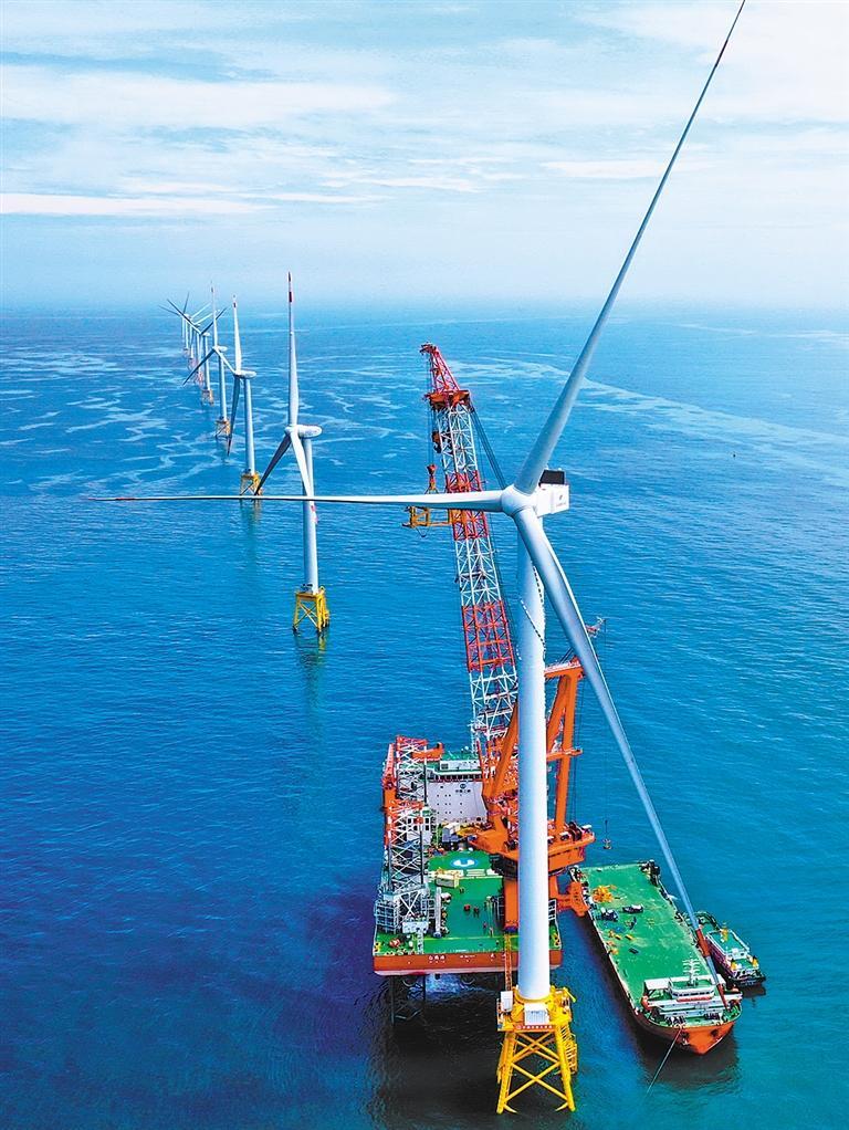 7月19日,16兆瓦超大容量海上风电机组在三峡集团福建海上风电场并网发电,标志着我国相关研发制造及运营能力再上新台阶。这是风电机组安装完成现场。新华社记者 林善传摄