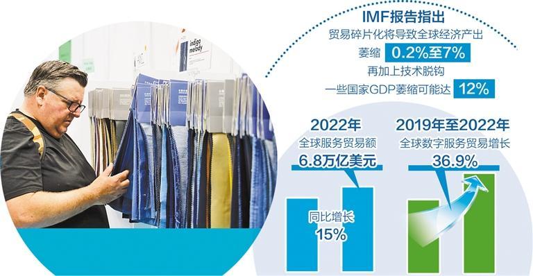 同时,全球数字服务贸易、环境商品贸易和全球价值链等领域也处于扩张之中。2022年,全球服务贸易额为6.8万亿美元,同比增长15%。全球贸易数字化进程飞速发展。2019年至2022年,全球数字服务贸易增长了36.9%。