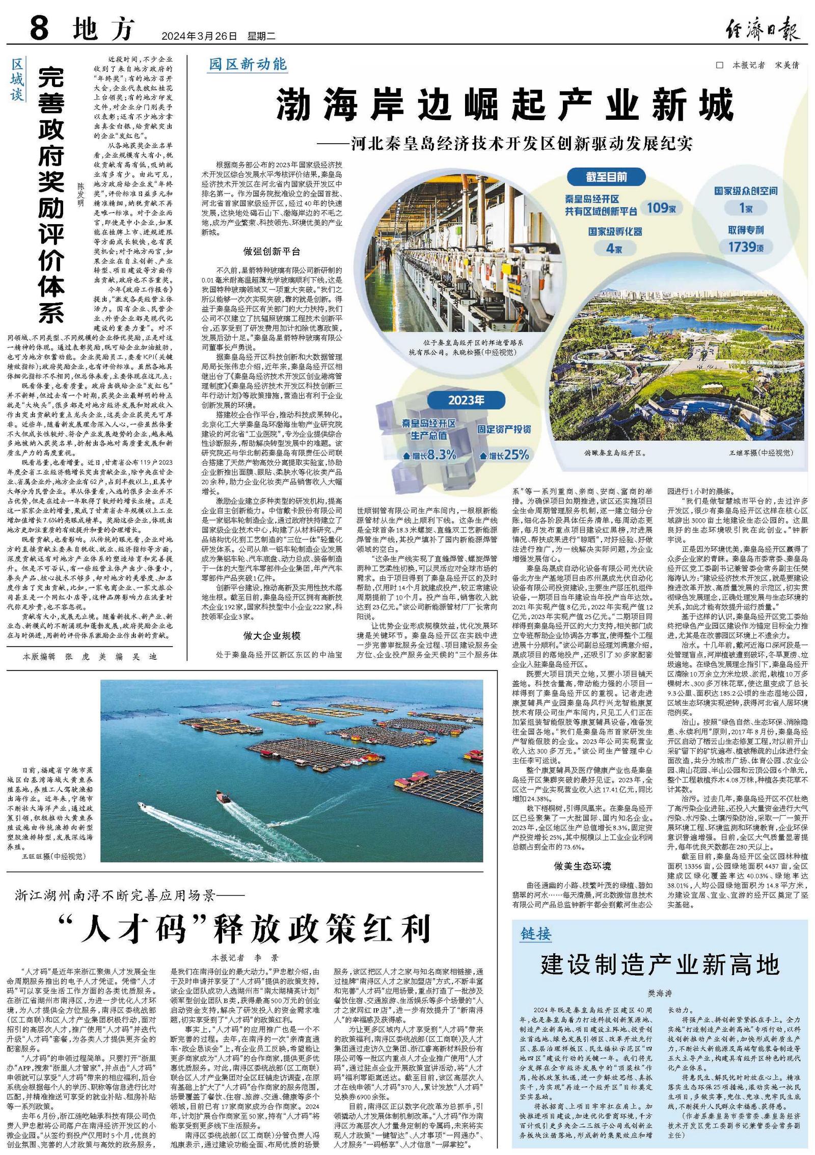 根据商务部公布的2023年国家级经济技术开发区综合发展水平考核评价结果,秦皇岛经济技术开发区在河北省内国家级开发区中排名第一。作为国务院批准设立的全国首批、河北省首家国家级经开区,经过40年的快速发展,这块地处碣石山下、渤海岸边的不毛之地,成为产业繁荣、科技领先、环境优美的产业新城。