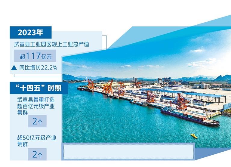在推进产业升级过程中,武宣县通过1个总体计划、3个子方案、1个配套政策,聚焦加快传统产业转型升级、加快新兴产业集群发展、加快现代化产业园区建设、加快推进科技创新发展4个方面的重点任务,在“十四五”时期着重打造钙基新材料和高端绿色家具家居2个超百亿元级的产业集群,以及农产品及食品加工产业和电子信息、新能源、装备制造等新兴产业的2个超50亿元级产业集群。