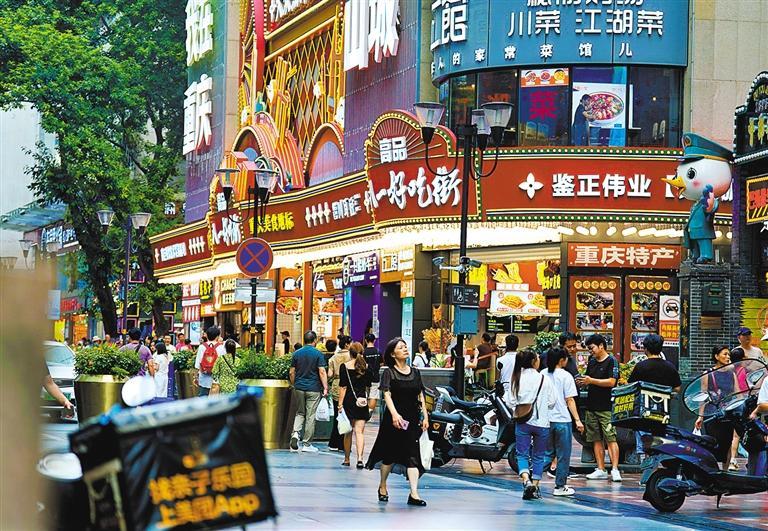 这些年,随着发展空间的不断扩容,解放碑步行街也进入发展快车道,实现从商业步行街到中央商务区的进阶。2023年,解放碑商圈成为西部地区首个社会消费品零售总额突破1000亿元的商圈;今年国庆假期,解放碑步行街累计客流突破600万人次,商圈重点监测商场实现销售额近4亿元。