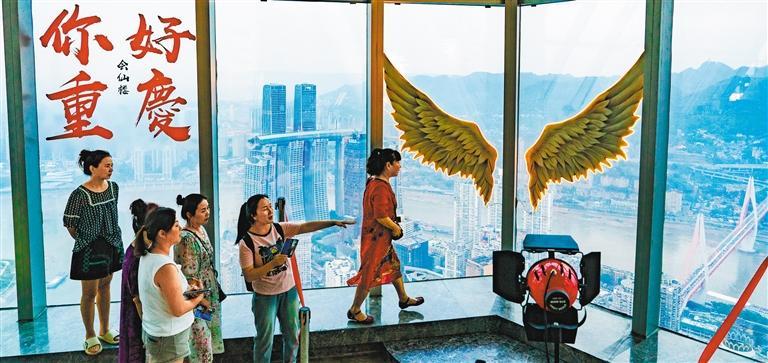 ①9月25日,游客在享有“西部之巅”称号的重庆环球金融中心会仙楼观景台观光。