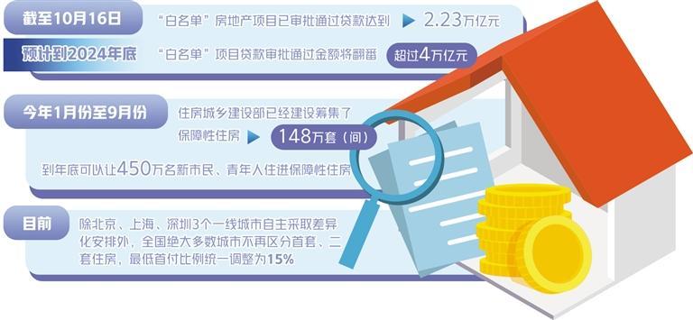 同时,各地金融监管部门为促进房地产市场平稳健康发展,建立“白名单”扩围增效机制,推动信贷投放“能早尽早”。例如,江苏金融监管局联合住建部门推动江苏省保交房项目按区域共享至各地市房地产融资协调机制,指导辖内银行机构逐个对项目梳理摸排,开展项目授信前调查,理清进入“白名单”的具体堵点卡点。截至10月28日,江苏辖内协调机制已向银行机构推送房地产“白名单”项目300余个,获得银行授信超千亿元。天津金融监管局不断加大“白名单”项目贷款投放力度。截至目前,天津市共有40个房地产项目纳入“白名单”,民营及混合所有制房企项目占比达到73%,“白名单”项目已获批授信78.2亿元。