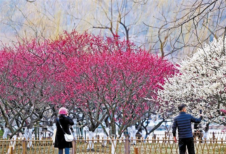 近日,随着天气逐渐回暖,浙江省杭州市孤山公园内不同品种的梅花竞相绽放,吸引游客和市民驻足观赏。 周方玲摄(中经视觉)