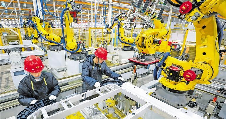 2月21日,在安徽省淮北市龙湖工业园的安徽国轩象铝科技有限公司生产车间里,工人正忙着生产新能源汽车铝底盘。近年来,当地抢抓新能源汽车产业发展机遇,推动资源型城市加快转型升级。李 鑫摄(中经视觉)
