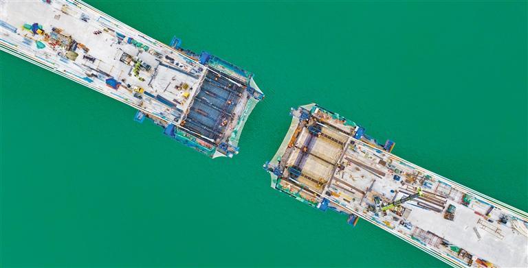 ▶2月12日,广东省广湛高铁广佛段建设现场。