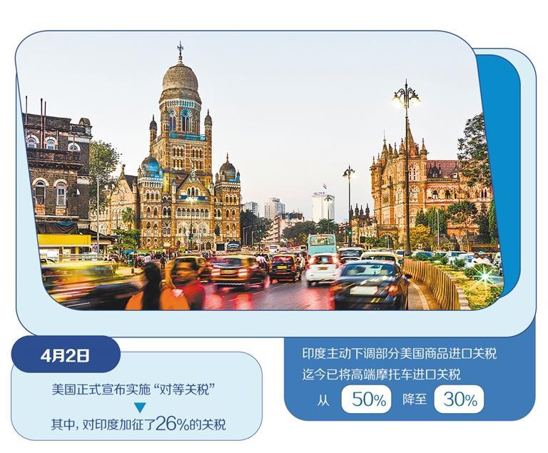 此前,为缓解美国关税压力,一方面印度主动下调部分美国商品进口关税,迄今已将高端摩托车进口关税从50%降至30%,波旁威士忌进口关税从150%降至100%;另一方面主动寻求与美进行贸易磋商。3月初,印度商业和工业部部长皮尤什·戈亚尔访美;3月底,美国贸易代表团赴印,均聚焦关税问题,围绕双边贸易协议展开磋商。市场相关人士表示,印度政府曾考虑削减价值230亿美元的美国进口商品关税,以避免被美国列入“对等关税”加征清单,但最终印度还是没能躲过关税“大棒”。印度工业贸易部表示,将认真审视“对等关税”实施后给印度经济带来的影响,同时加快与美双边谈判,争取达成互利协议。
