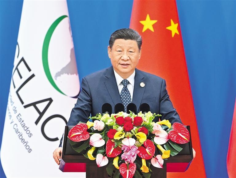 习近平最后强调,无论国际风云如何变化,中国始终做拉美和加勒比国家的好朋友、好伙伴,同拉方在各自现代化征程上并肩前行,共同谱写构建中拉命运共同体新篇章。