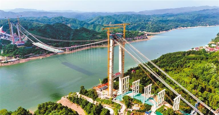 ▼5月13日,位于湖南省怀化市沅陵县的洞庭溪沅水特大桥项目现场,钢混组合梁吊装工作在有序开展。