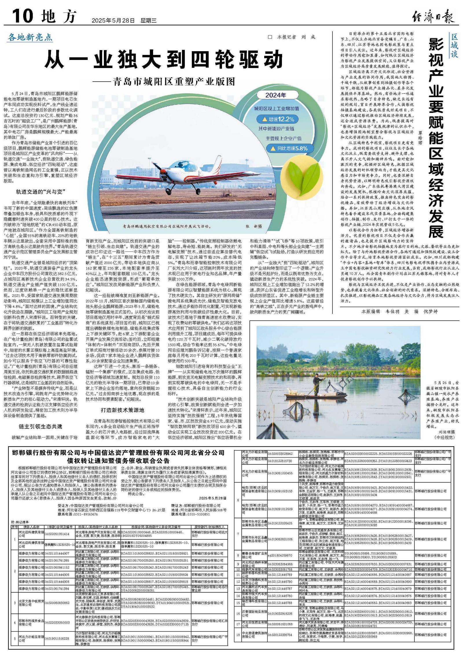 “技术创新突破是城阳产业结构升级的核心引擎,政策创新赋能则会进一步加速技术转化。”宋清轩表示,近年来,城阳区坚持实施“技改强链”工程,3年来统筹国家、省、市、区技改资金6.97亿元,滚动实施“智改数转网联”新技改项目600余个,撬动全区实现工业技改投资近200亿元。在低空经济领域,城阳区推出“低空场景机会和能力清单”“试飞券”等10项政策,吸引中科星图、中电科等头部企业共建“一主两辅”低空试飞试验场,打造从研发到应用的完整链条。