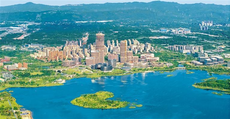 7月1日,四川天府新区成都片区兴隆湖湿地公园湖水清澈,绿树环绕,在蓝天白云之下构成一幅美丽画卷。该公园在调节气候、净化空气方面发挥着重要作用,成为鸟类栖息的生态绿洲。翁光建摄(中经视觉)