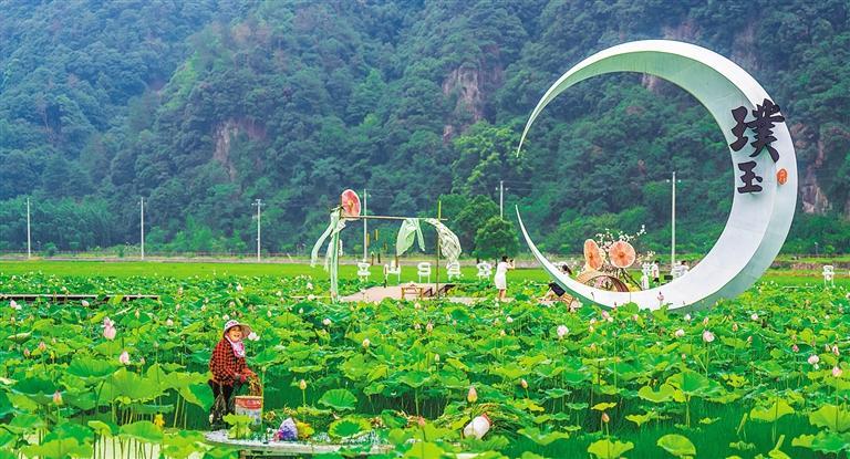 ▼6月24日,浙江省绍兴市嵊州市贵门乡璞玉村荷花竞相盛放,吸引游人前来赏荷。