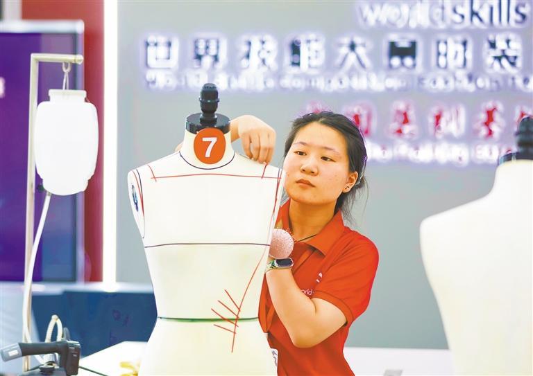 6月13日,福建省晋江市泉州轻工职业学院,选手参加时装设计项目立体裁剪模块技能比赛。