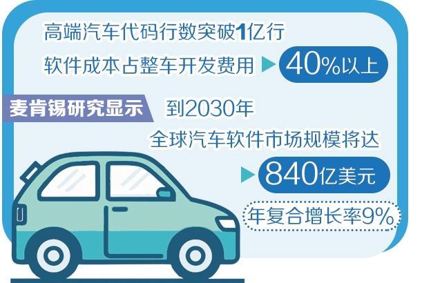 当前,全球汽车产业正加速向智能化、网联化转型,汽车软件已成为行业竞争核心。数据显示,高端汽车的代码行数已突破1亿行,软件成本占整车开发费用的40%以上,且仍在持续上升。麦肯锡研究显示,到2030年,全球汽车软件市场规模将达到840亿美元,年复合增长率达9%。在这一决定汽车行业未来竞争力的关键领域,欧洲车企却明显落后。
