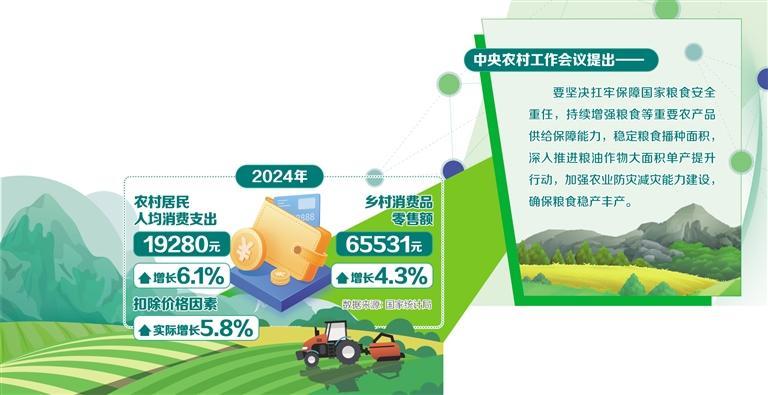 消费关系到产品价值的最终实现,是社会再生产循环的关键环节。城乡居民消费不充分不均衡会制约消费环节在社会再生产中的作用,进而影响国民经济循环的顺利进行。2024年,农村居民人均消费支出是城镇居民的55.8%。城乡居民消费的短板在农村,拓展消费增量、推动结构升级关键在于提升农村居民消费水平。更好满足农村居民消费需求,有助于化解消费不充分不均衡问题,促进国民经济循环畅通。