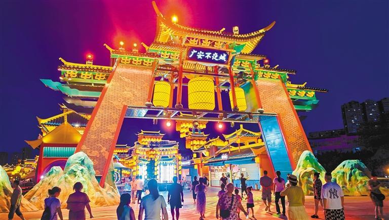 7月5日,四川省广安市城北渠江边的“广安不夜城”热闹非凡,众多市民来此消夏纳凉、打卡游玩。