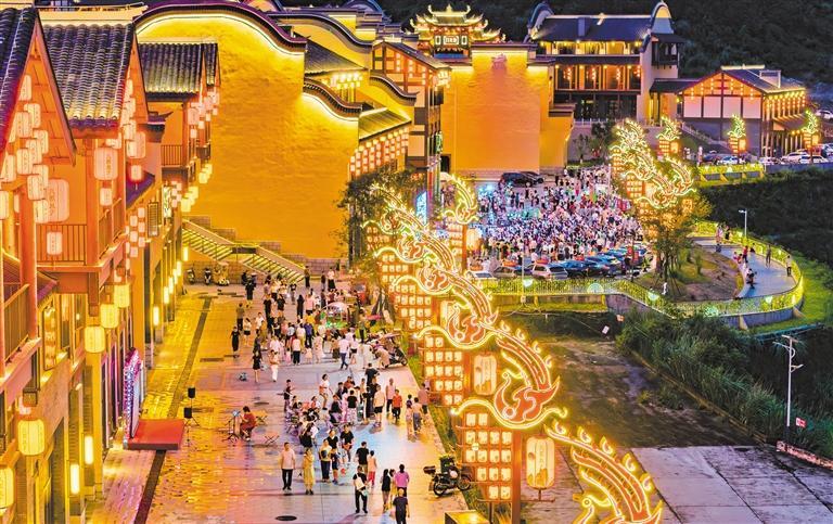 7月1日,湖北省秭归县九歌巷子灯火通明,游人如织。市民和游客在夜市中纳凉、休闲、购物,观看文艺表演、品尝特色美食。