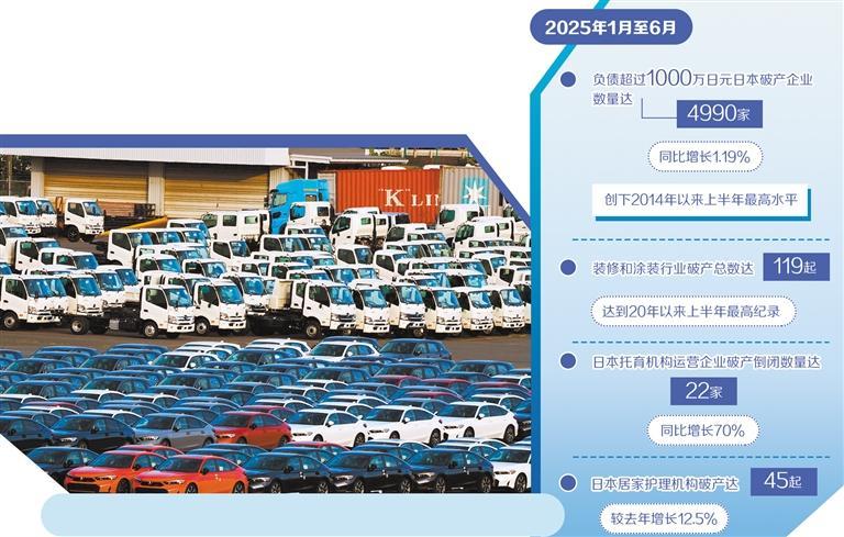日本民间企业信誉调查机构东京商工调查公司最新调查结果显示,2025年1月至6月,负债超过1000万日元的日本破产企业数量达到4990家,比去年同期增长1.19%,创下2014年以来的上半年最高水平。分析认为,日本企业“破产潮”影响广泛,因素复杂,受国际经济形势和国内政局影响,未来规模仍有增加趋势。