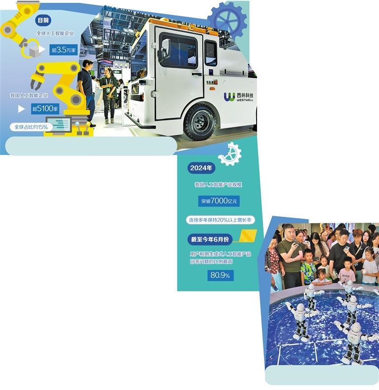 中国信息通信研究院数据显示,目前全球人工智能企业超3.5万家,我国人工智能企业超5100家,全球占比约15%,产业规模持续壮大,形成覆盖基础底座、行业应用的完整产业体系。