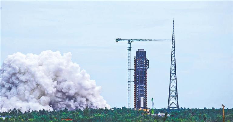 8月15日,我国在文昌航天发射场成功组织实施长征十号系列运载火箭系留点火试验。这是继圆满完成梦舟载人飞船零高度逃逸飞行试验和揽月着陆器着陆起飞综合验证试验之后,我国载人月球探测工程研制工作取得的又一项重要阶段性突破。新华社记者 张 斌摄