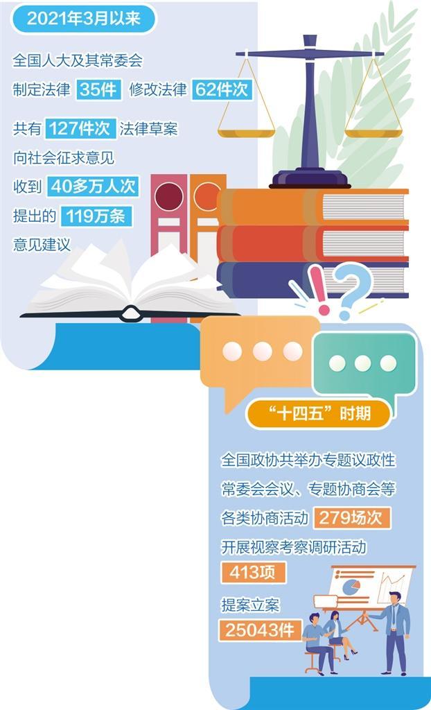“抓住提高立法质量这个关键,深入推进科学立法、民主立法、依法立法,努力让每一部法律都满载民意、贴近民生、顺应民心。”关于人大立法,全国人大常委会副秘书长、办公厅研究室主任宋锐给出一串数字:2021年3月以来,全国人大及其常委会制定法律35件、修改法律62件次,通过有关决定、决议34件。
