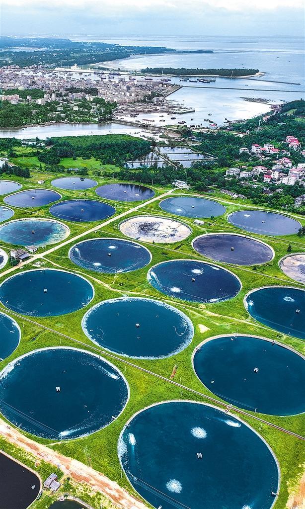 八月十六日,在广西防城港市港口区企沙镇拍摄的陆基圆桶养虾基地。近年来,当地大力发展陆基圆桶养殖对虾,已建成陆基圆桶超五百个、养殖池超四十个,年产对虾超两千三百吨,产值突破一亿元。喻湘泉摄(中经视觉)