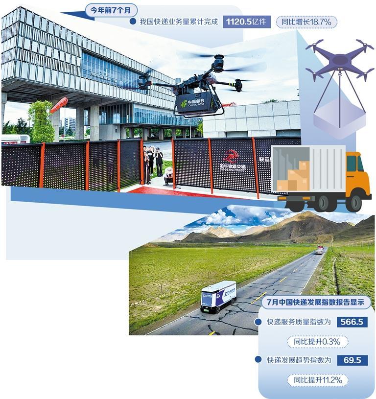 快递物流连接千城百业、联通线上线下、融入生产环节、嵌入消费场景,是现代流通体系的重要组成部分。国家邮政局发布数据显示,今年前7个月,我国快递业务量累计完成1120.5亿件,同比增长18.7%。