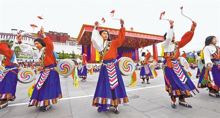 8月21日上午,西藏各族各界干部群众约2万人欢聚拉萨市布达拉宫广场,热烈庆祝西藏自治区成立60周年。潘 多摄(中经视觉)