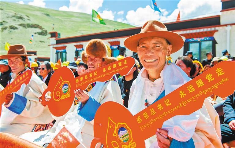 8月15日,西藏定日6.8级地震灾后恢复重建首批民房入住仪式在日喀则市定日县长所乡森嘎村举行,首批2578户12139人喜气洋洋入住新居。