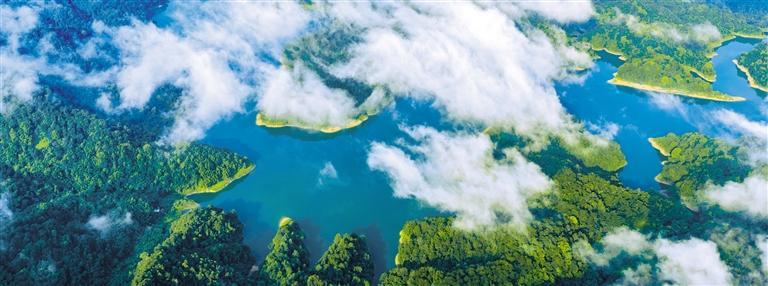 9月7日,广西梧州市蒙山县茶山水库云雾缭绕、景美如画。近年来,当地推进湖泊水资源治理修复,生态环境得到改善,有效保障县城居民饮水、农田灌溉用水,助力地方经济社会高质量发展。黄胜林摄(中经视觉)