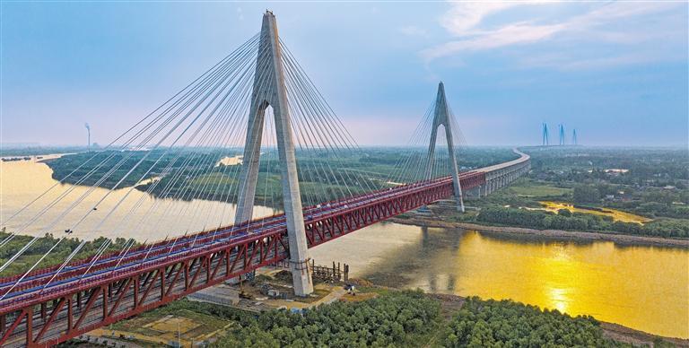 9月7日拍摄的安徽马鞍山巢马城际铁路马鞍山长江公铁大桥副汊航道桥建设现场。该城际铁路是国家“八纵八横”高铁网沿江通道的重要组成部分,建成后将进一步完善区域高铁网络布局。