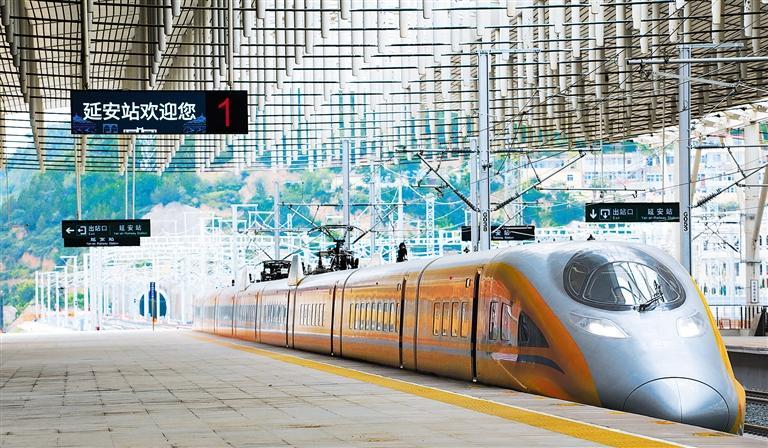 9月11日,西安至延安高铁正式进入联调联试阶段。作为陕北革命老区的首条高铁,西延高铁是国家高速铁路网包(银)海高速铁路通道重要组成部分,线路全长299.8公里,建设标准为双线高速铁路,设计速度每小时350公里。建成后,西安至延安铁路运行时间将从2.5小时缩至1小时左右,对完善国家高铁布局、助力西部地区高质量发展具有重要意义。图为DJ502次综合检测列车抵达延安站。