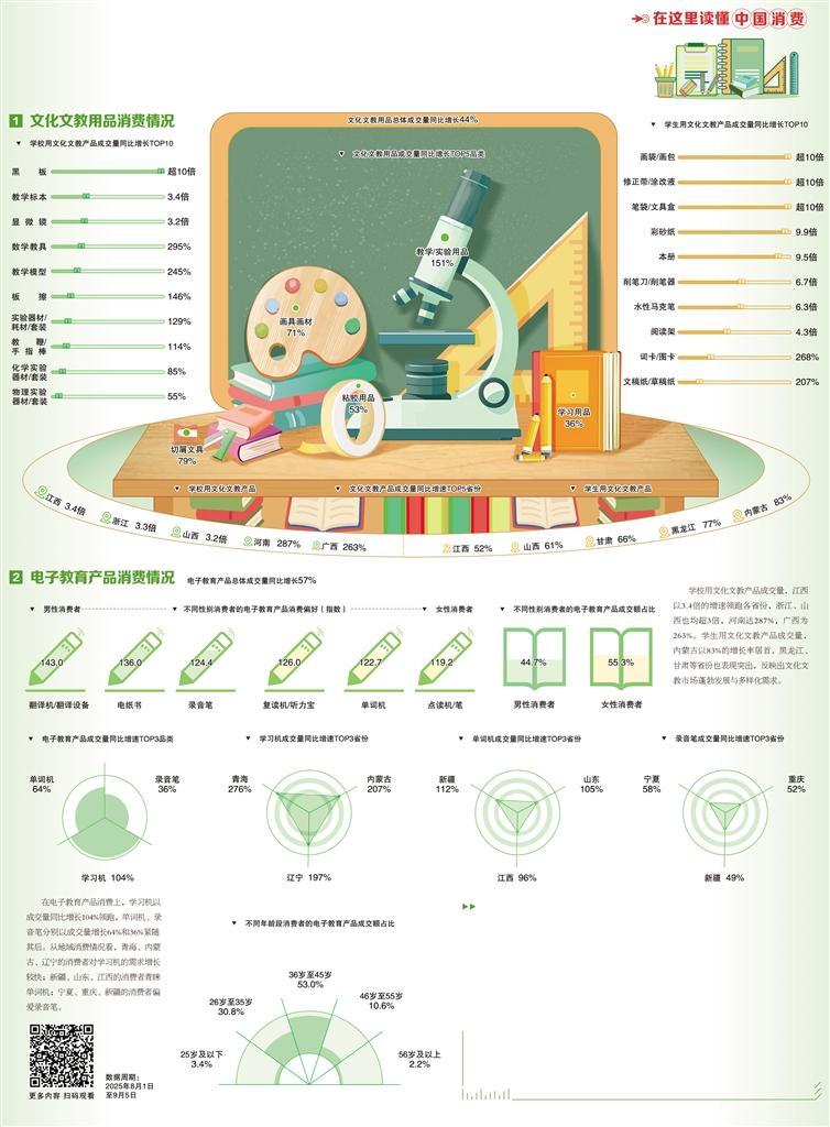 随着新学期到来,文化文教用品和电子教育产品消费呈现出一系列显著变化,这些数据不仅反映了当下开学季消费市场的火热,更为教育产品的迭代升级指明了方向。
