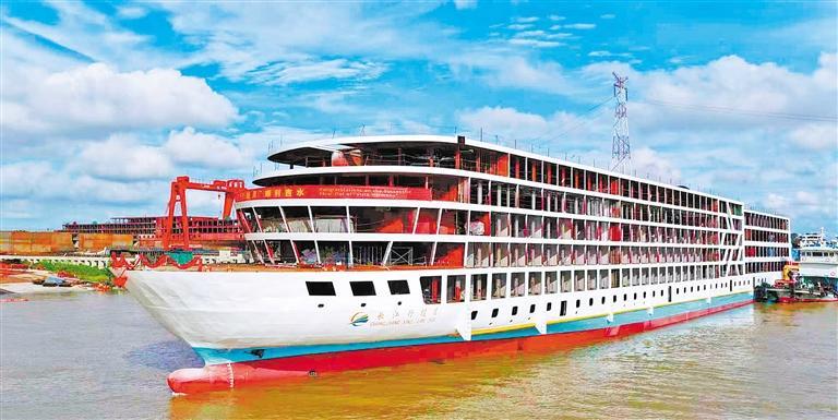 9月12日,湖北宜昌枝江市七星台镇,首艘长江省际度假游轮“长江行·揽月”在宜昌船舶工业园顺利吉水,预计2026年5月正式投入运营。近年来,当地依托得天独厚的交通区位优势,抢抓“气化长江”“电化长江”等重大机遇,大力发展绿色智能船舶产业。