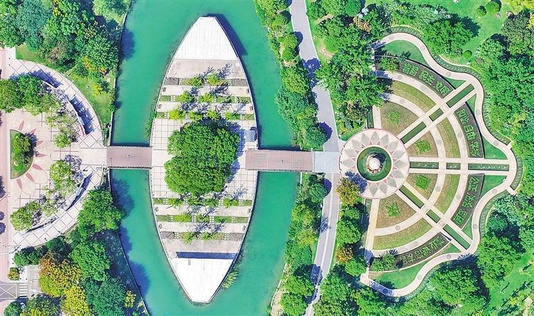 9月16日,江苏省张家港市梁丰生态园内,小桥、湖水、树木等相映成景,构成一幅秋日美丽画卷。施柏荣摄(中经视觉)