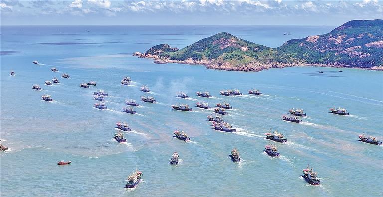 9月16日12时,浙江省台州市温岭石塘渔港,600多艘渔船扬帆起航,奔赴东海展开捕捞作业。为期四个半月的东海伏季休渔正式结束,全面开渔。