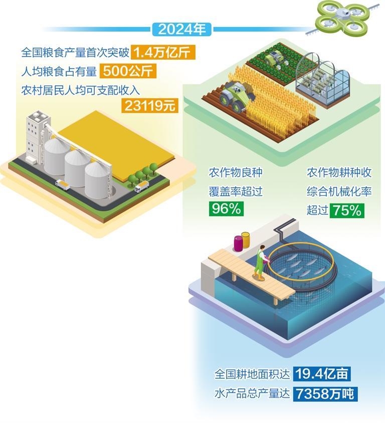 耕地和种子是农业增产的“两个要害”。农业农村部扎实推进新一轮千亿斤粮食产能提升行动,大力推进高标准农田建设,深入实施种业振兴行动,持续提升粮食综合生产能力。