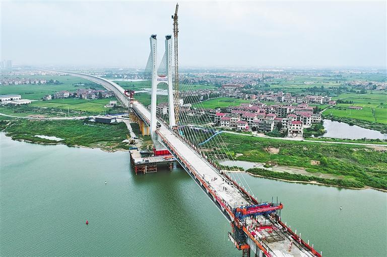 9月18日,随着最后一方混凝土浇筑完成,京港高铁昌九段(以下简称“昌九高铁”)南昌扬子洲赣江公铁大桥跨赣江南支主桥成功合龙,标志着昌九高铁三座跨赣江主桥全部合龙。胡国林摄(中经视觉)